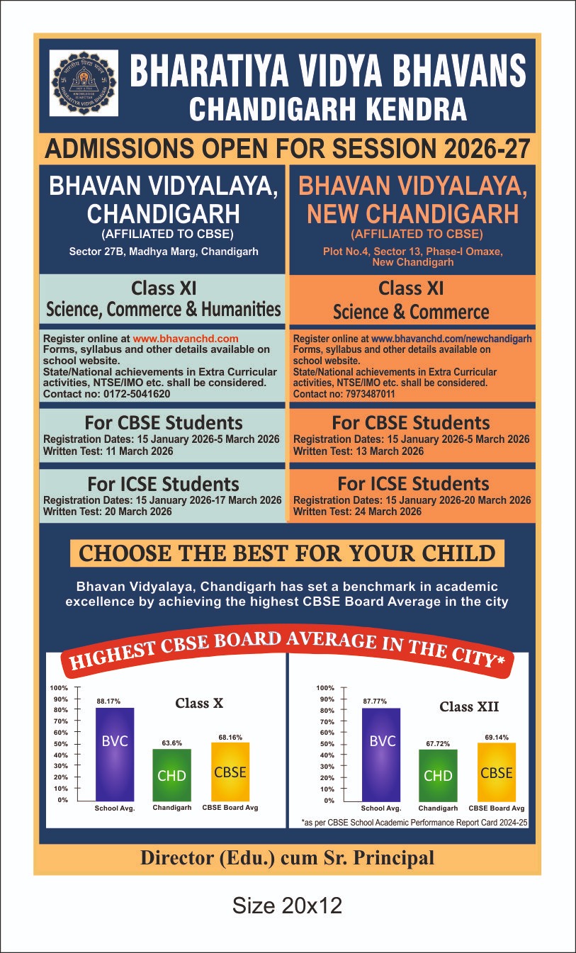 Regisration forms, syllabus and other details available on school website bhavanchd.com. All further updates shall be available only on school website.