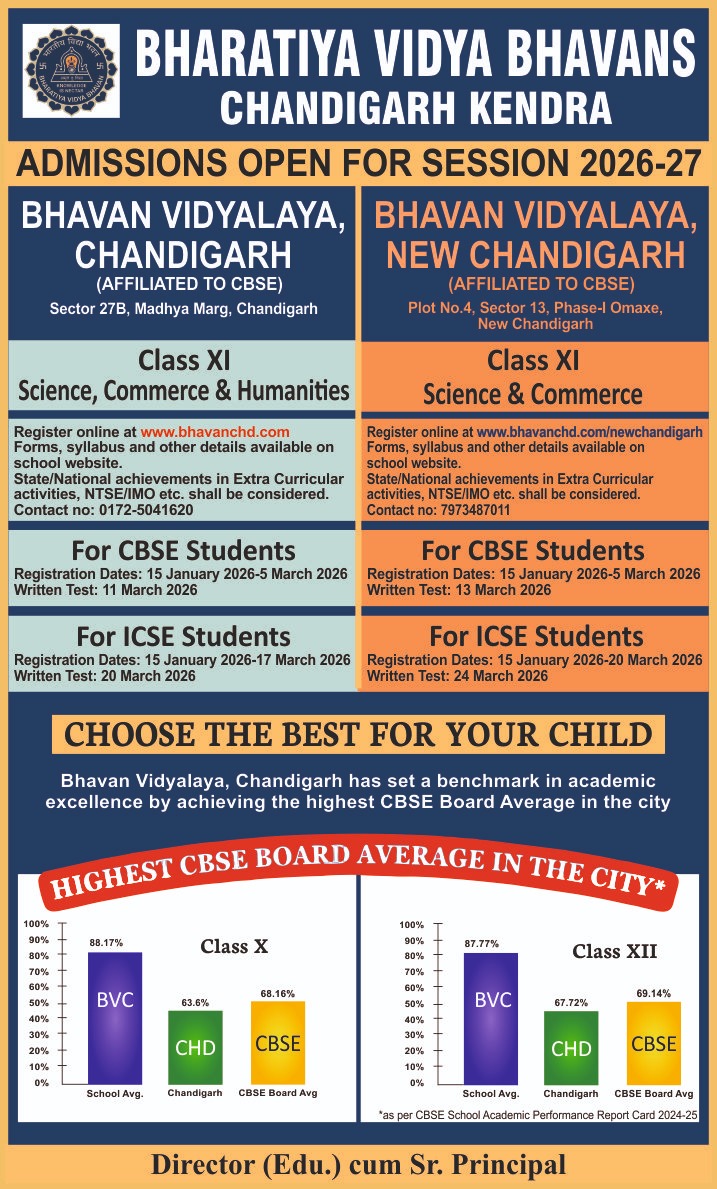 Registration forms, syllabus and other details available on school website https://www.bhavanchd.com/newchandigarh. All further updates shall be available only on school website.
