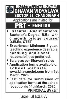 Duly filled application form to be submitted at Bhavan Jr. Wing, Sector 33 D, Chandigarh, school reception by